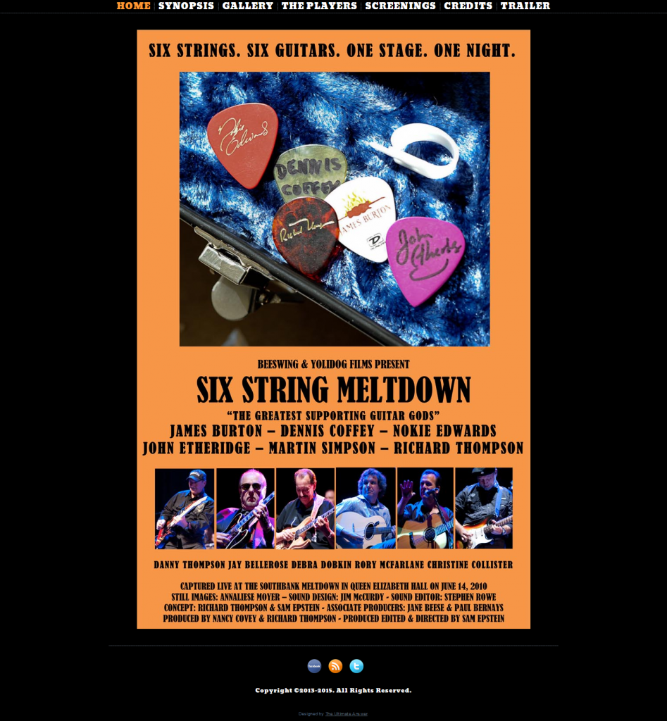 Project: Movie / DocumentaryWebsite Build: WordPress (CMS)Website Type: Informational / MarketingWebsite Features:BlogEmail Capture SystemStrong Visual DesignPhoto GallerySearch Engine OptimizedLIVE SITE: http://Sixstringmeltdown.com More Projects